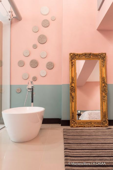Mergulhado do universo da moda e decoração, Jean se inspirou nas “candy colors”, as cores dos doces dessaturadas, que é o que traz uma pegada vintage anos 50 ao ambiente. “São aquelas cores mais clarinhas, a gente se apropria delas para dar esse tom”, explica. Tons que geralmente estão entre rosa, verde e azul bem clarinhos.