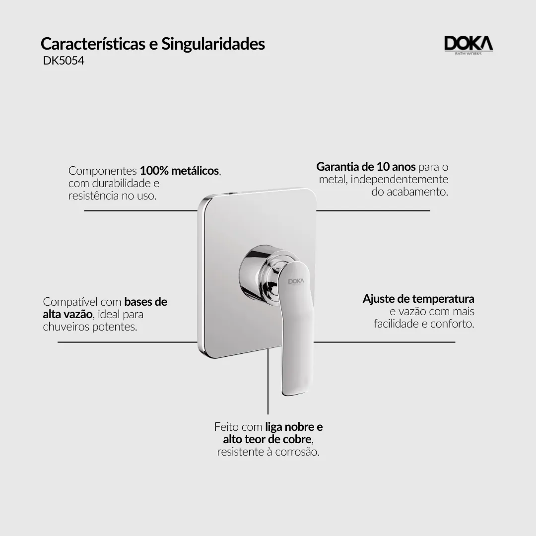 Referências: DK5054CR (Chrome) | DK5054GO (Gold) | DK5054RG (Rose Gold) | DK5054GM (GunMetal) | DK5054BG (Brushed Gold) | DK5054BRG (Brushed Rose Gold) | DK5054BN (Brushed Nickel) | DK5054MW (Matt White) | DK5054MB (Matt Black)