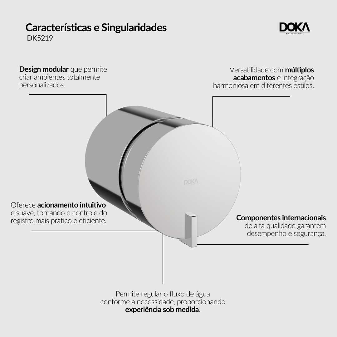 O Acabamento para Registro de Chuveiro Quantum Doka é a peça perfeita para quem deseja adicionar um toque de sofisticação e funcionalidade aos seus ambientes. O Acabamento para Registro Quantum destaca-se pela sua versatilidade e capacidade de adaptação a diferentes estilos e necessidades.