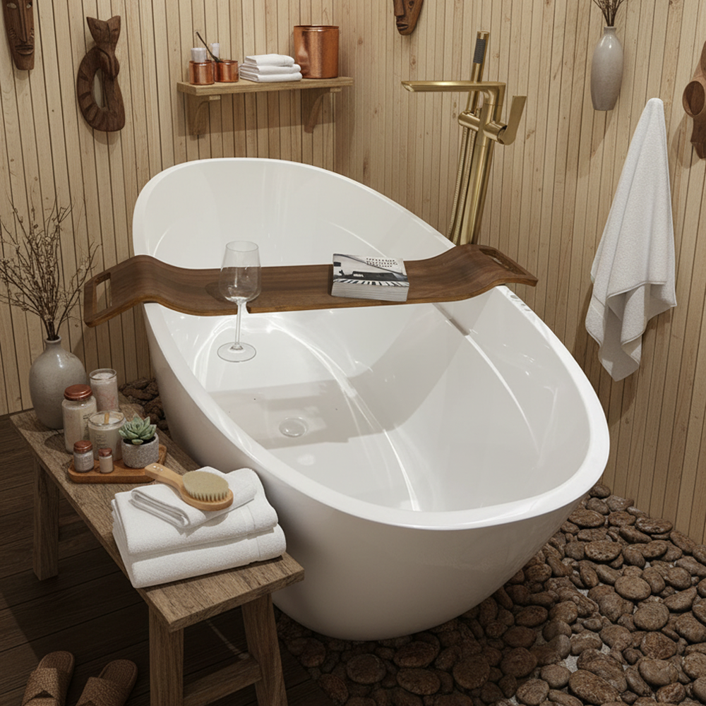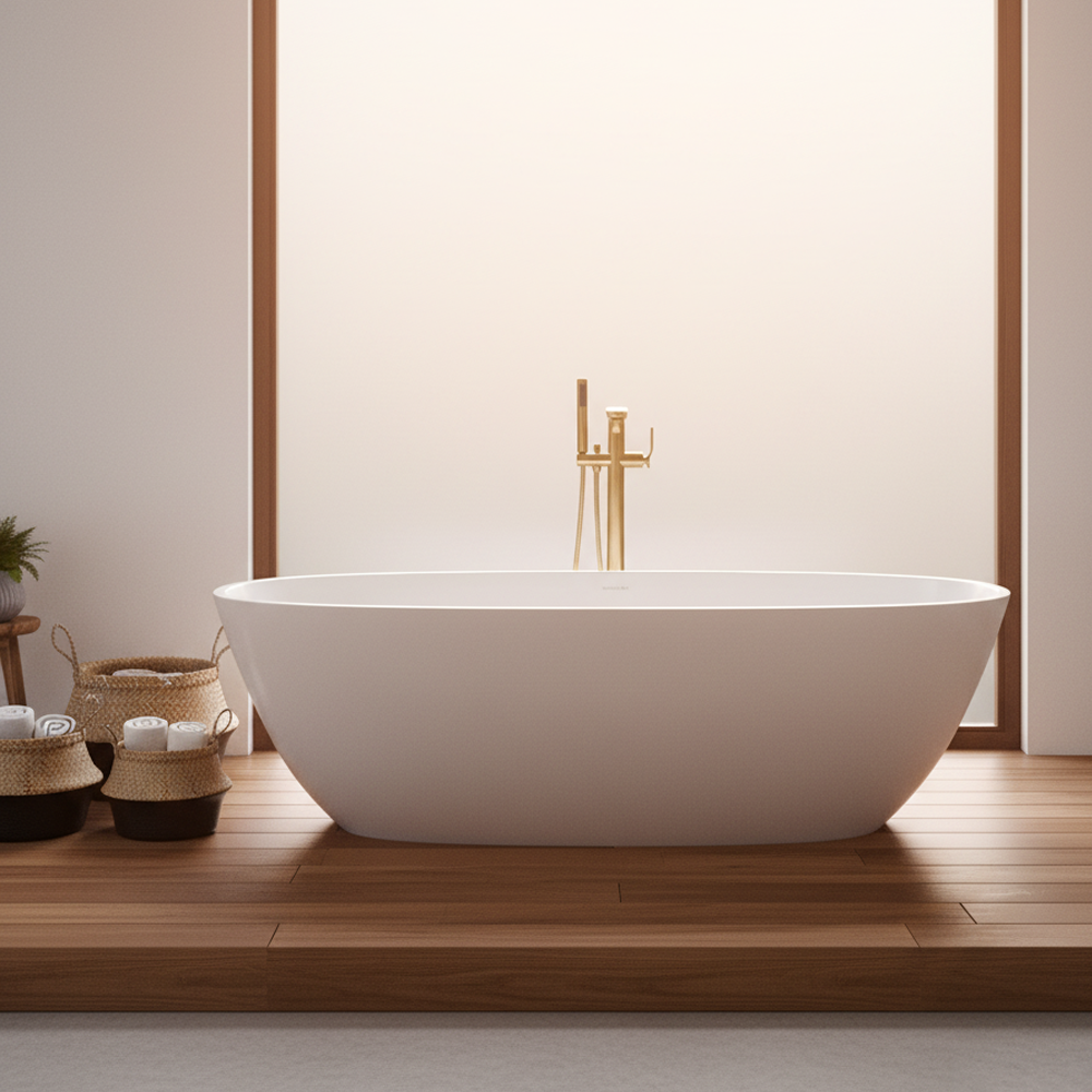 O design freestanding oferece liberdade para projetos sem necessidade de alvenaria, enquanto a leveza do material dispensa reforços estruturais. Além disso, o Quarrycast® mantém a água aquecida por mais tempo, proporcionando banhos prolongados de puro relaxamento.