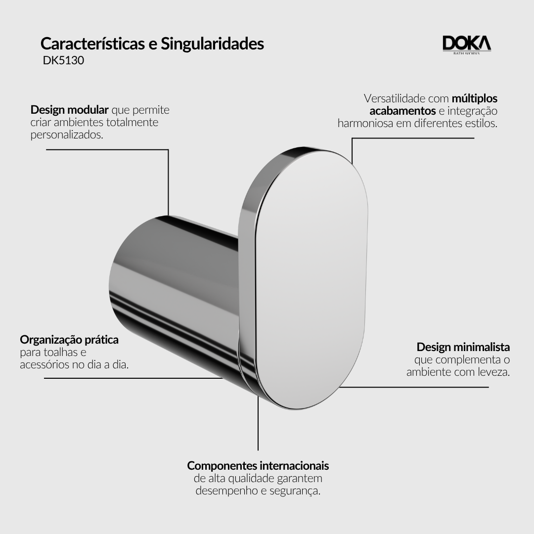 O Cabide de Parede Doka Quantum é uma verdadeira inovação para banheiros, oferecendo uma solução prática e elegante para otimizar o espaço e organizar itens pessoais de maneira eficiente. Este produto destaca-se não apenas pela sua funcionalidade, mas também pelo seu design inteligente, que combina beleza e praticidade em um só item.