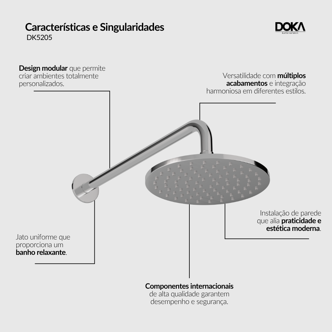 O Chuveiro de Parede Redondo Quantum da Doka é a escolha perfeita para quem busca uma experiência de banho de luxo e conforto incomparáveis.
