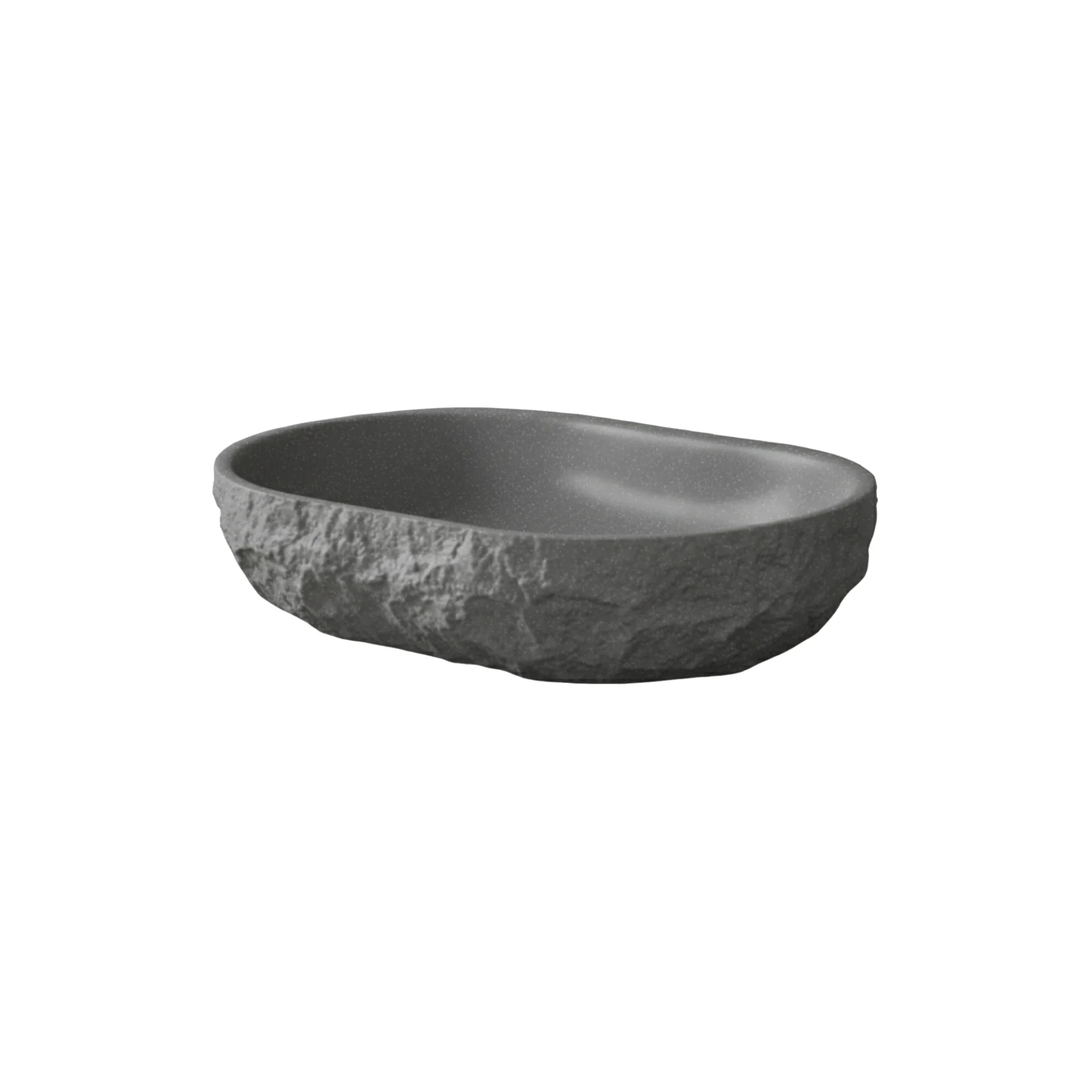 Cuba de Apoio Elíptica Rock GeoStone traduz a força bruta da pedra em uma silhueta orgânica e contemporânea. Inspirada na natureza, combina exterior texturizado que remete à rocha moldada pelo tempo, com interior suave e refinado. O contraste entre rusticidade e precisão cria uma presença marcante, mas equilibrada, no ambiente.