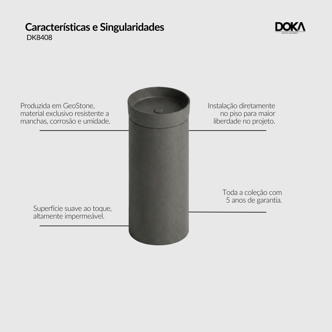 Produzida em GeoStone, uma pedra tecnológica de alto desempenho, a peça apresenta massa homogênea, estabilidade de cor e resistência ao uso contínuo. O acabamento integral permite intervenções superficiais quando necessário, prolongando a vida útil sem comprometer a aparência original. Esse conjunto técnico torna a Cuba de Piso Redonda GeoStone adequada tanto para uso residencial quanto comercial, mantendo consistência estética mesmo em rotinas intensas.