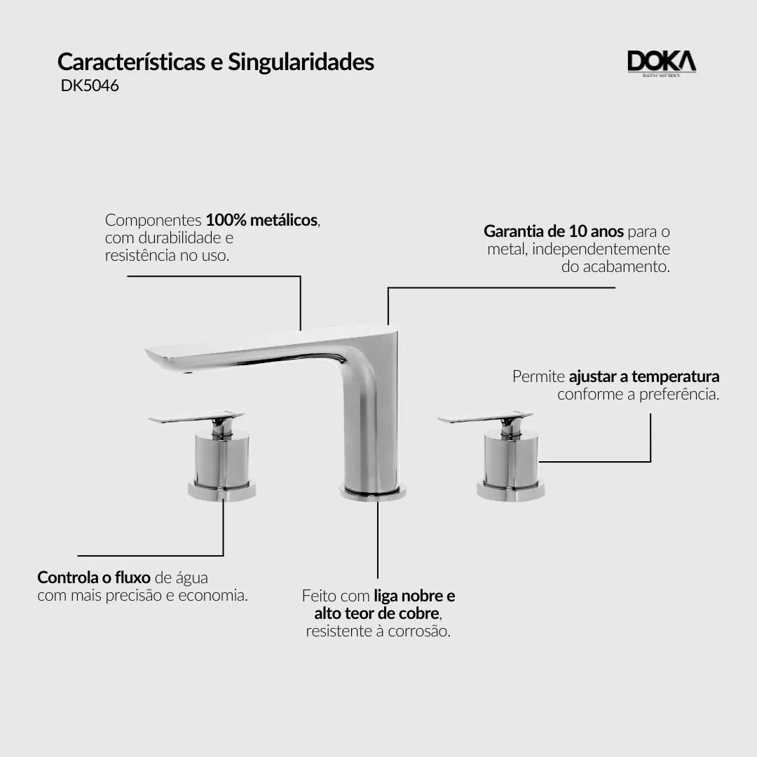 Com acabamentos variados, o Misturador para Lavatório Doka Rainbow permite que você escolha a tonalidade que mais combina com a sua sala de banho. Essa versatilidade é um dos grandes diferenciais da linha, possibilitando que cada ambiente tenha um toque único e personalizado.
