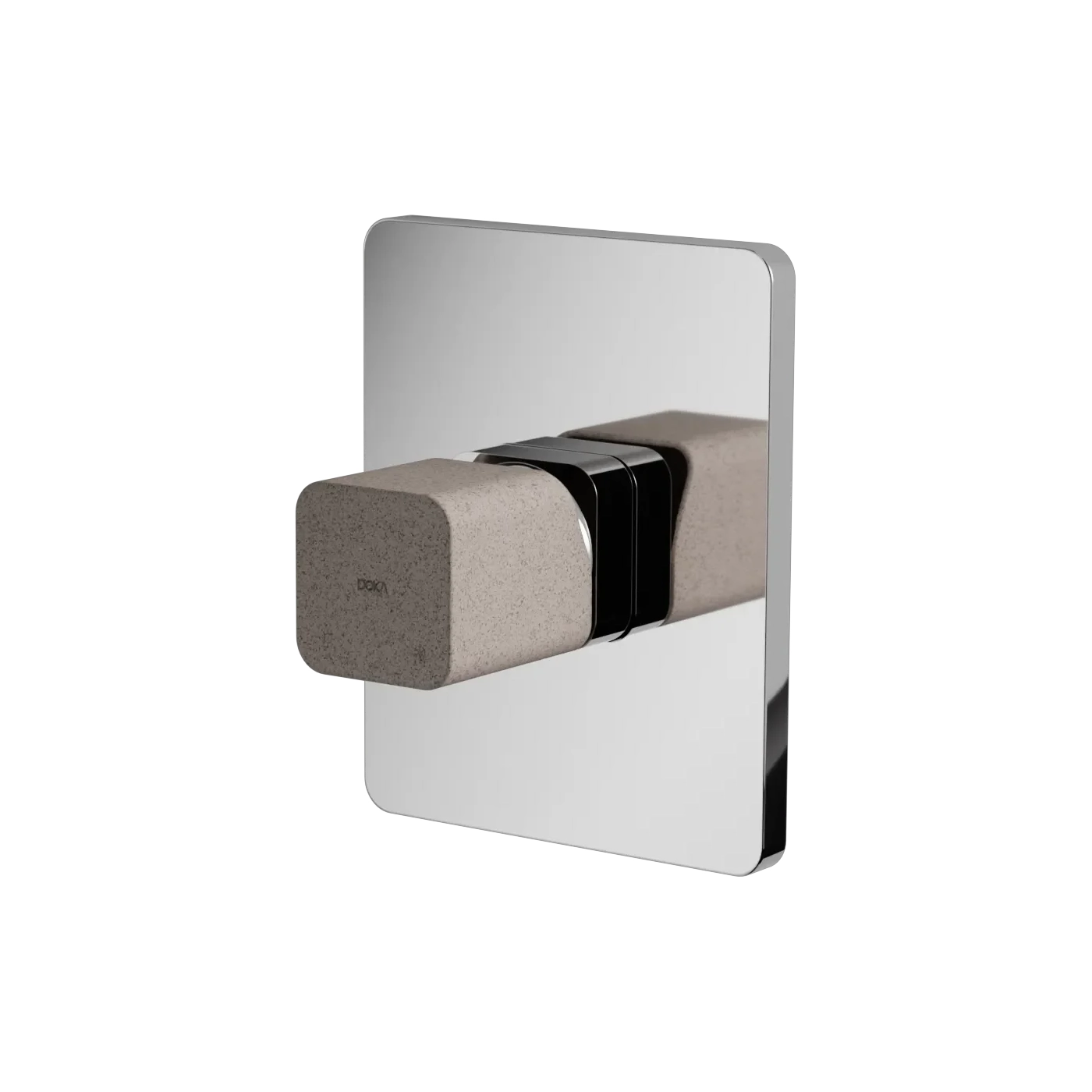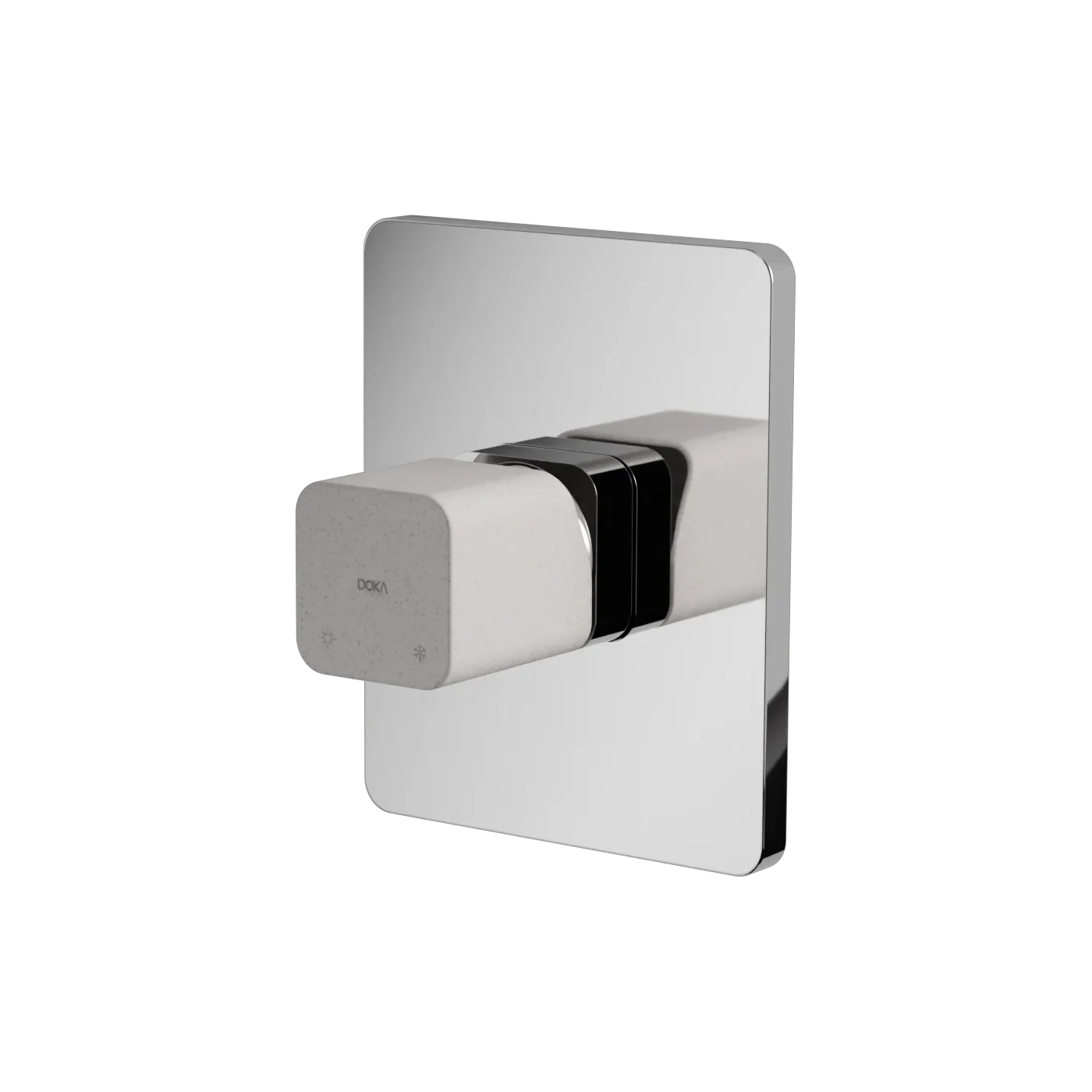 Cada detalhe do Monocomando para Chuveiro Rivvo é cuidadosamente pensado para criar uma experiência única e personalizada. Você pode personalizar os Volantes (Handles) dos Monocomandos e Misturadores, escolhendo entre 8 acabamentos distintos da coleção de Cubas GeoStone e Cabides GeoStone. Estes acabamentos incluem: Light Concrete, Dark Concrete, Dark Red Terrazzo, Dark Blue Terrazzo, Off White Terrazzo, Black Terrazzo, White Terrazzo e Moss Grey Terrazzo. Assim, você pode combinar o Monocomando com a Cuba desejada, criando uma harmonia perfeita entre os elementos do seu banheiro.