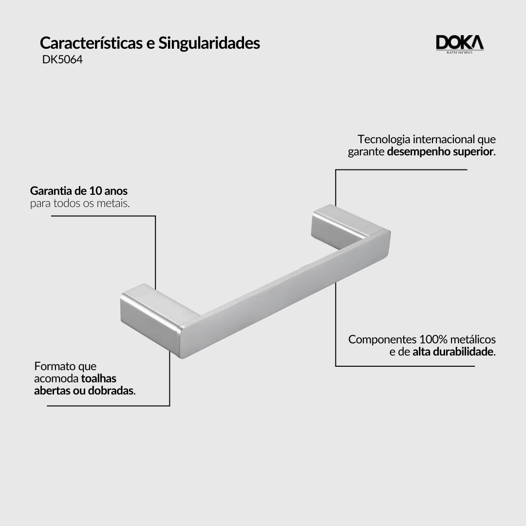 O Toalheiro Retangular Rivvo combina qualidade e elegância, transformando qualquer ambiente de banho com seu design moderno e prático. Em primeiro lugar, seu formato retangular e a barra lisa conferem um visual sofisticado, além de oferecerem funcionalidade e organização. Este toalheiro de parede, portanto, acomoda facilmente toalhas de rosto, tornando-se um item indispensável para manter o seu banheiro organizado e funcional.
